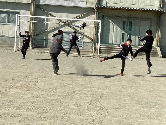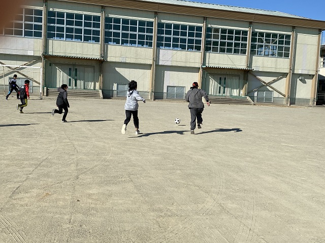 帰られる前に、サッカーをしている子どもたちの中に入り、一緒にサッカーをしていただきました。