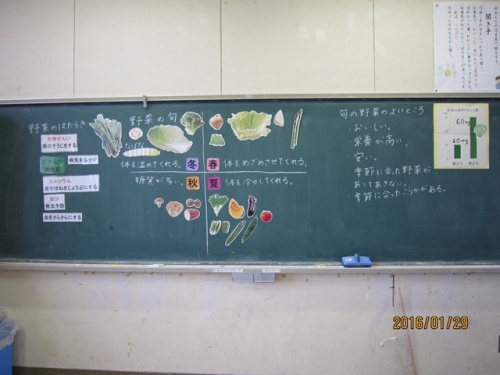 29日(金)の2限目に、港小学校の栄養教諭中野先生に来ていただいて、5年生が食育の授業を行いました。今日のテーマは、「旬の野菜のパワーを知ろう」でした。今は、年中出回っている野菜も多く、旬がわかりにくくなってきていますね。でも、旬の野菜には、いいことがいっぱい。安くておいしい旬の野菜をいっぱい食べたいですね。