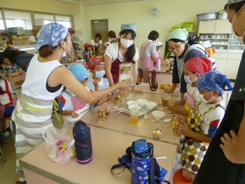 3限目は家庭科室でミニパフェ作りを行いました。学級委員さんがいっぱい材料を買ってきてくださったので、子どもたちも好きなのをのせて、おいしそうに食べていました。