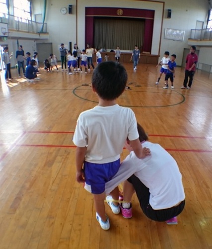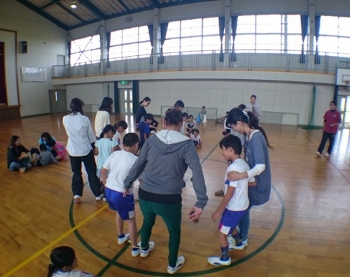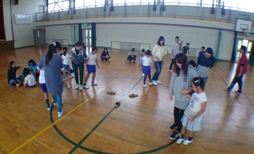 2年生は、体育館でレクリエーションをしました。じんとり、風船運び、しっぽとり、ドッジボールなどたくさんの競技を楽しみました。子どもたちのチームが勝ちました。
