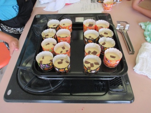 4年生は、3限目に体育館でドッジボールを赤対白と、親対子をしました。親チームの勝ちでした。4限目は家庭科室でカップケーキ作りで、チョコマフィンを作りました。時間はかかりましたが、上手においしそうにできました。子どもたちは給食の後に食べて、おうちの人の分は持って帰りました。