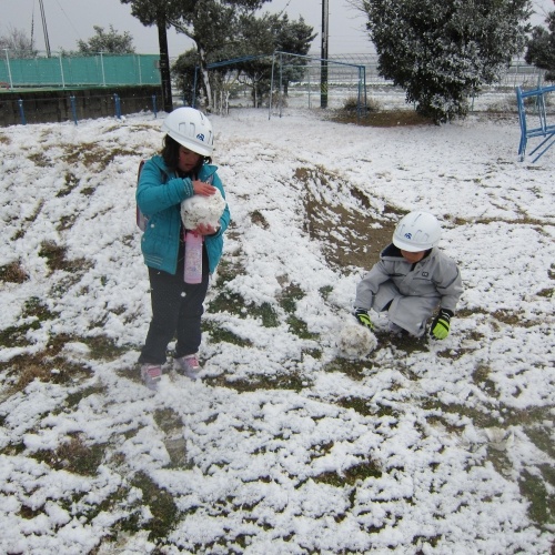 雪玉をつくったり、雪合戦をはじめたり、それぞれが雪遊びを楽しんでいました。