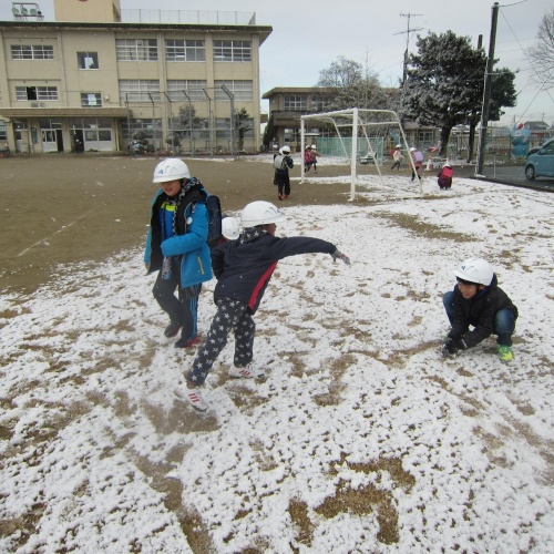 5限で下校となる低学年の子どもたちは、ちょっと早く運動場に出て雪遊びをはじめました。
