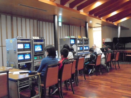 最後に「挑戦!番組作り」で自分たちで準備した台本でオリジナル番組を制作しました。文化祭や地域との関連学習についての番組を作りました。完成した番組は後日ブルーレイディスクでもらいます。