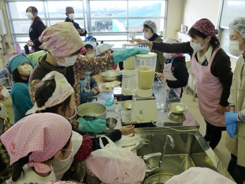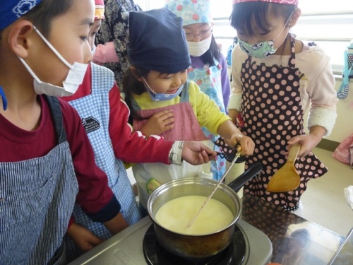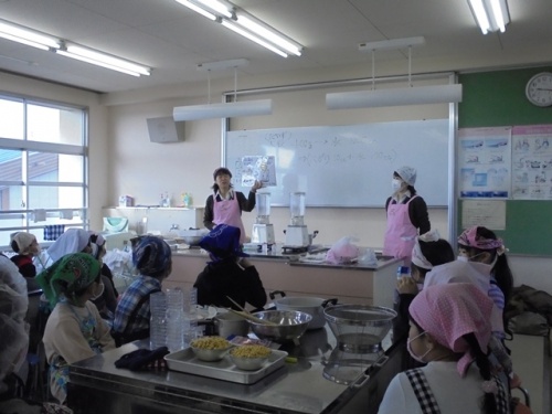 31日(火)に、1.2年生がJAや伊勢場の方々にお世話になり、豆腐作りを体験させていただきました。使った大豆は伊勢場の体験農場で種をまき、豆たたきをさせていただいた大豆「ふくゆたか」でした。