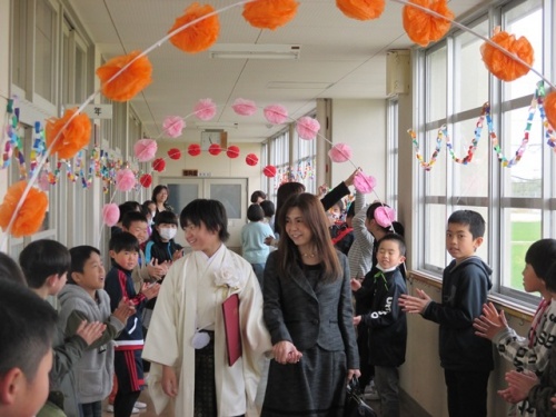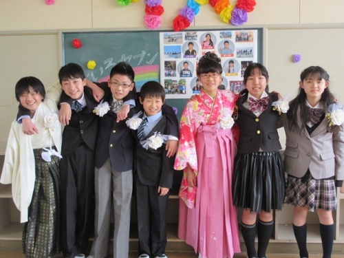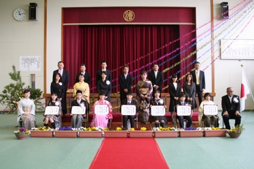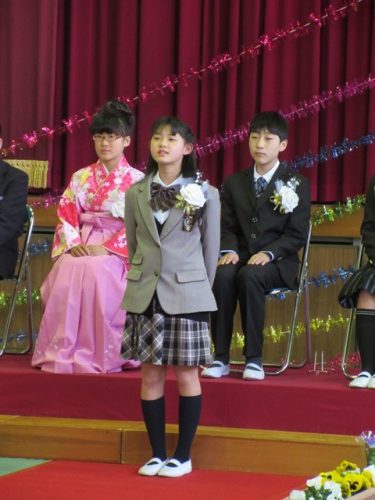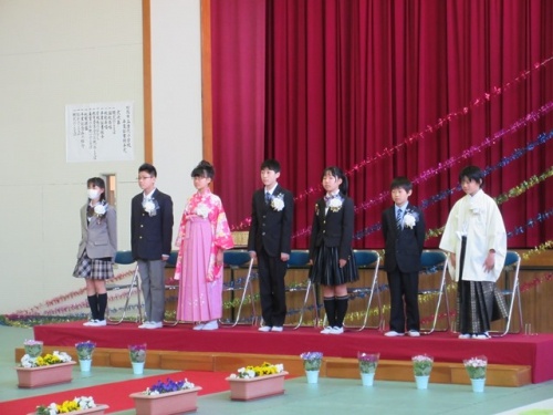 「にじいろセブン、漕代セブン」の7人卒業生でした。全員が素晴らしい態度で卒業証書を手にしました。七色に光り輝いていました。