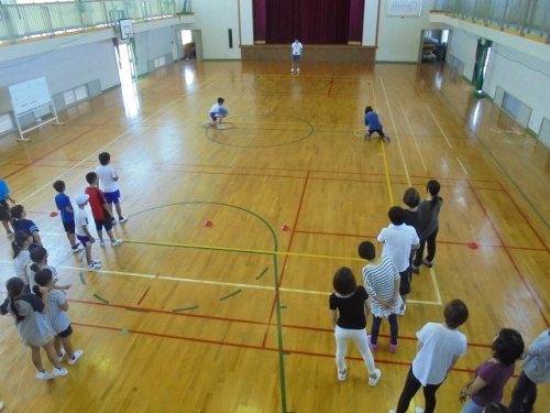 先ずは、体育館で、ミニ運動会を行いました。「箱積み上げ競争」「漕代宅急便」「スプーンレース」「ひもひき」「たまいれ」とたくさんの競技で、親子対抗で盛り上がりました。