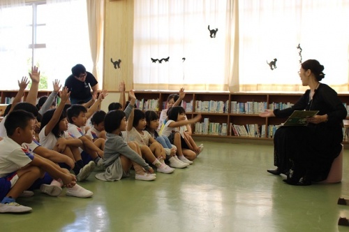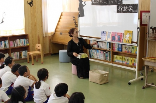 2限目は、低学年でした。低学年は、魔法学を学びました。「おおかみと七ひきのこやぎ」の読み聞かせの後、違うこと探しやおおかみが登場する絵本のブックトークをしていただきました。