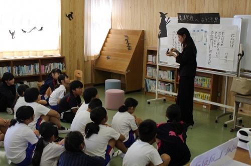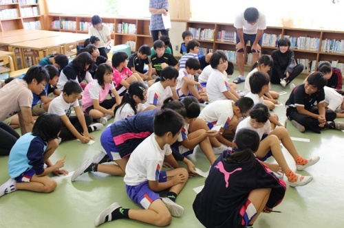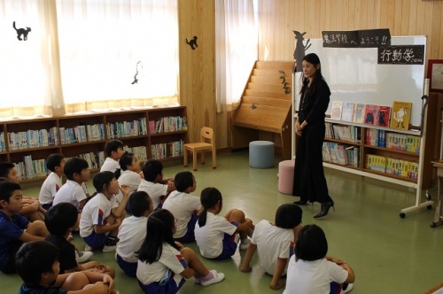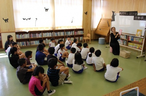 三限目の中学年は、行動学の授業でした。「むかしむかし とらとねこは?」の読む聞かせの後、気配を消す・感じる授業でした。猫つながりの本のブックトークをしていただきました。