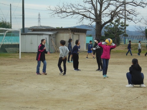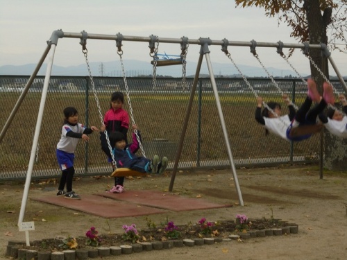 22日のロング休憩は、多くの子どもたちが運動場や園庭で遊んでいました。サッカー、バレーボール、鬼ごっこ、ブランコ、ジャングルジムなど。6年生と幼稚園児が遊んだり、3年生と4年生が一緒に鬼ごっこをしたり、異学年で一緒に遊べるのも、漕代小学校の良いところです。