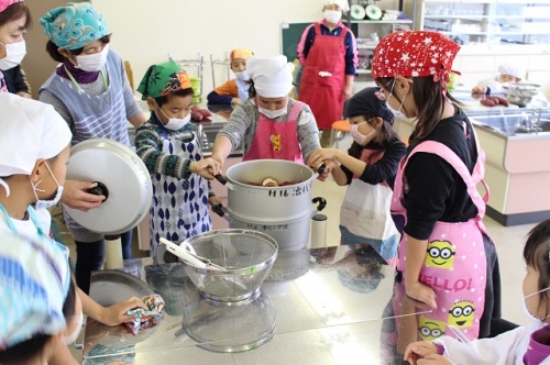 自分たちが作った「おにまんじゅう」や「スイートポテト」をおいしいおいしいと言いながら食べていました。