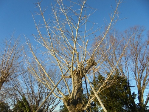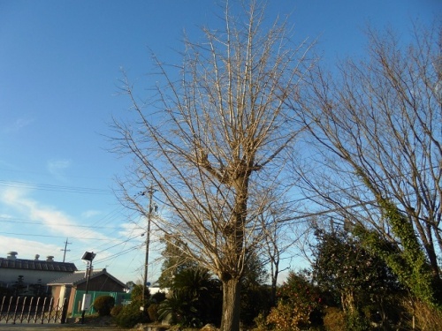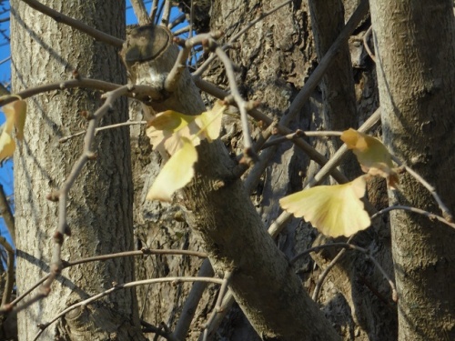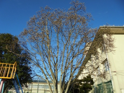 校庭のイチョウの葉がほとんどなくなりました。わずかに数枚の葉が、寒風に耐え残っています。