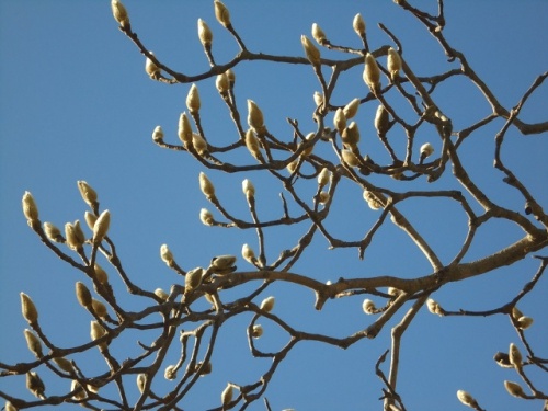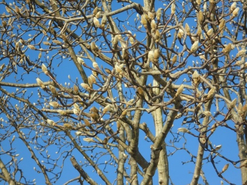 幼稚園の白モクレンも葉が落ちて、つぼみがいっぱい出来てきました。また、卒業式・卒園式の頃に白い綺麗な花をたくさん咲かせてくれるでしょう。