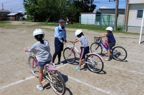 「とまとーず」さんによる交通安全教室が、1日(金)行われました。3年生~6年生は、自転車の安全な乗り方についてお話を聞き、その後、教えて頂いた事を確かめながら、実際に自転車に乗ってみました。公道でも教えて頂いたように「右よし、左よし…」と確認して、安全運転で自分の身を守って欲しいと思います。