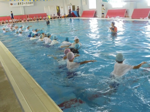 明和のベスパに行って着衣水泳の学習を行いました。服を着たままで水に入ったら重たい、泳ぎにくいことを体験し、ペットボトルや、ビート板があれば簡単に浮くことが分かりました。また、川や溝に落ちたら、自分は大丈夫と過信せず、すぐに水から上がること、おぼれている人がいたら、大人の人に知らせ、救急車を要請することを教えていただきました。プール、川、海に行くことがあると思いますが、自分の命は自分で守ることを忘れずに、楽しい夏休みにしていきましょう。