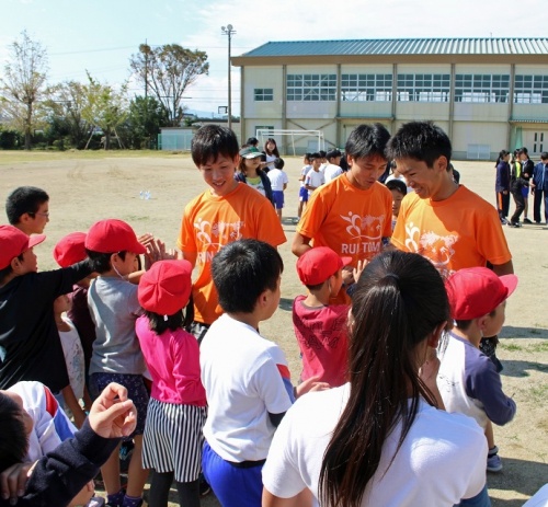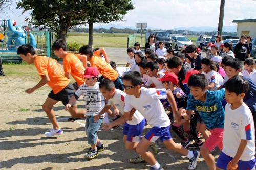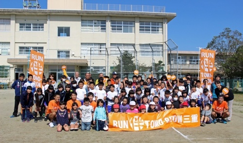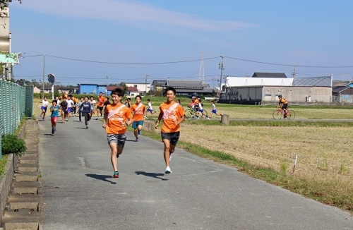 漕代小学校では2年前から子どもたちも参加しています。3年目の今年は、「認知症キッズサポーター養成講座」を受講した4・5年生の子どもたちランナーと一緒に走りました。
