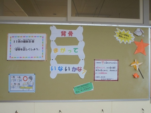 ホーム > 日々の活動の様子 姿勢を正しくしよう 11月の健康目標は「姿勢を正しくしよう」です。背骨が曲がっていないかが、簡単にチェックできる場を、保健室の先生が、廊下に準備してくれました。チェックをして、自分の背骨に意識して、正しい姿勢で過ごせるといいですね。 タグ:2018年度 シェアする Twitter でシェア はてなブックマークに保存 LINE でシェア Facebook でシェア Pocket に保存 Feedly で購読 関連投稿 日々の活動の様子 1年生を迎える会 日々の活動の様子 幼稚園との交流会(4年生) 日々の活動の様子 東部中学校入学説明会(6年生) 日々の活動の様子 5年生と幼稚園の交流会 日々の活動の様子 iPadを使った学習(4年生) 日々の活動の様子 平成30年度卒業証書授与式 前の投稿 文化祭に向けて練習中(6年生) 次の投稿 11月集会