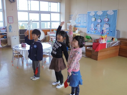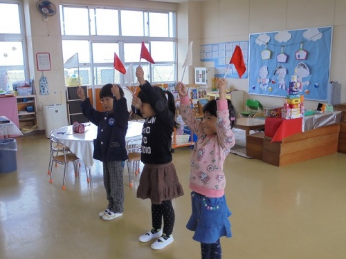 ホーム > 日々の活動の様子 読み語りの会(幼稚園) 毎月幼稚園では、地域の方による読み聞かせの会が行われています。今日は、絵本の読み聞かせの後、両手に旗を持って「赤上げて、白上げて・・・」をしました。しっかり聞いていないと間違えます。集中して聞く勉強になりました。 タグ:2018年度 シェアする Twitter でシェア はてなブックマークに保存 LINE でシェア Facebook でシェア Pocket に保存 Feedly で購読 関連投稿 日々の活動の様子 修学旅行説明会 日々の活動の様子 2月集会 日々の活動の様子 整頓された靴 日々の活動の様子 運動会 日々の活動の様子 食育の授業(3年生) 日々の活動の様子 4年生社会見学 前の投稿 凧あげ(幼稚園) 次の投稿 松阪市小学校サッカー大会