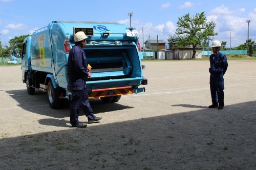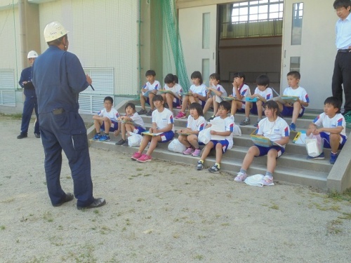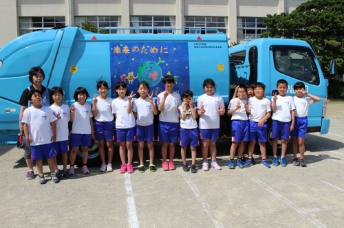 リサイクルセンターから来ていただいてパッカー車のつくりやごみの分別について学習しました。自分たちが持ってきたゴミをパッカー車に捨てたり、ボタンを押して機械を動かしたりしました。教室に戻ってからはごみの分別の仕方を学びました。その後たくさんの質問をしました。「トラックの方がたくさん運べるのではないですか。」の質問には、「パッカー車はごみを圧縮できるのでトラックよりたくさんのごみが運べます。」と教えていただきました。学んだ事を生かして、ゴミの分別やリサイクルをしていってほしいと思います。