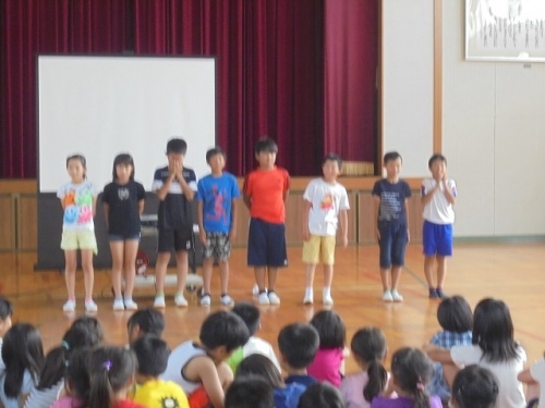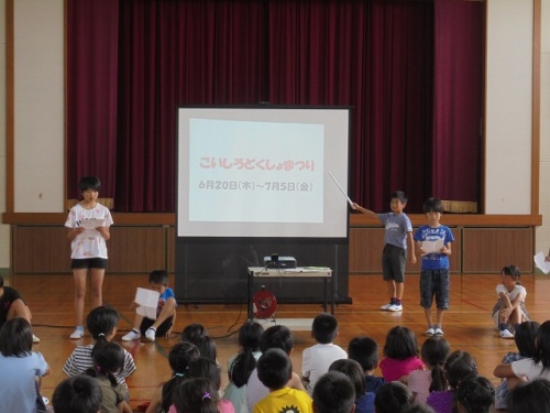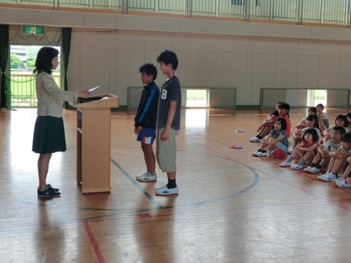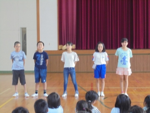 集会の前に表彰式がありました。松阪市の陸上大会の表彰でした。集会は、①校長からの話(授業の様子から学びの力)②保健委員会からはお誕生日の紹介③図書委員会からは「こいしろ読書祭り」(ビンゴや本のリクエスト)について④児童会からは雨の日の体育館の使用についてでした。時間があったので、その後玉入れ大会をしました。だんだん集会も自分たちで進めていけるようになってきています。