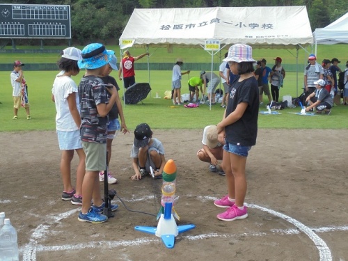 10日(土)県営松阪野球場で開かれた大会に4年生が参加しました。4年生の子どもたちは理科、総合的な学習の時間等の授業で40m先の目標にいかに近づけるかを考え試行錯誤を重ねてきました。羽の枚数、水の量、ポンプを押す回数、発射台の角度などいろいろな条件を考え工夫しました。当日は2チームで参加しチームで協力しながら全力を発揮していました。入賞はできませんでしたが満足いく結果でした。保護者の皆様暑い中応援ありがとうございました。