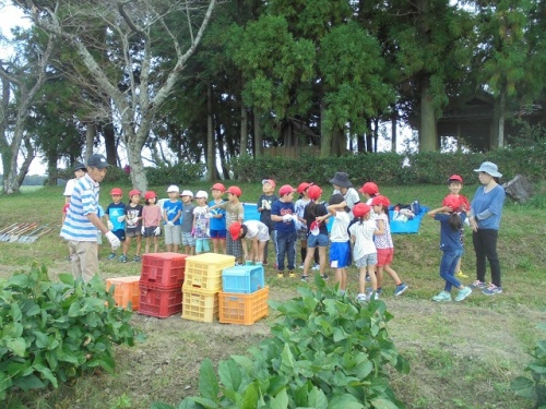 春に伊勢場のふれあい農園でつるさしをしたお芋が大きく成長していました。伊勢場の皆さんにより事前に葉やつるが切ってくださってあり、すぐにいもをほることができました。国語科で勉強した「大きなかぶ」を思い出しながら友だちと力を合わせて掘っている子もいました。隣の畑では枝豆が元気に育っていました。伊勢場の皆様ありがとうございました。