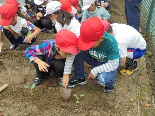ホーム > 日々の活動の様子 野菜の苗を植えたよ(1,2年生) ボランティアの方に手伝っていただき、ブロッコリーの苗植えと大根の種まきをしました。肥料に土をかぶせたり、もみがらをまいたりもしました。使った道具の片づけは2年生がやりました。どちらも収穫は2月頃になるそうです。 タグ:2019年度 シェアする Twitter でシェア はてなブックマークに保存 LINE でシェア Facebook でシェア Pocket に保存 Feedly で購読 関連投稿 学校だより 学校だより№20 日々の活動の様子 委員会活動 日々の活動の様子 流れる水のはたらき(5年生) 日々の活動の様子 図工の授業(1年生) 日々の活動の様子 こいしろタイム 学校だより 漕代小学校だより№13 前の投稿 後期委員会スタート 次の投稿 修学旅行7旅館に到着