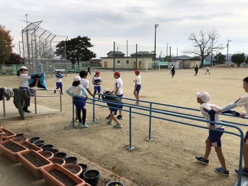 今日はそうじがなく昼休憩が長い「ロング休憩」の日です。そのためか今日は運動場で遊んでいる子が多いようです。5年生は学級遊びをしていました。クラスで話し合って「けいどろ」をすることになった様です。子どもたちだけでしたが、上手に運営して楽しそうに遊んでいました。