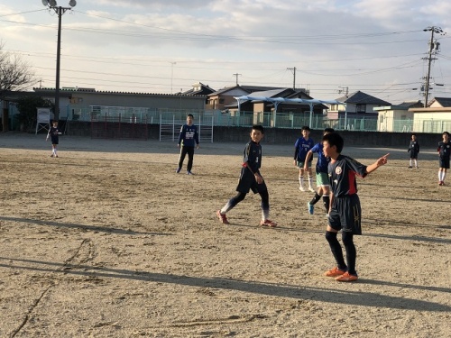 冬休みに入りましたが、サッカークラブは練習試合をしてがんばっています。23日はてい水小学校、港小学校、25日は射和小学校と練習しました。人数は少ないですが、よくまとまっています。年明けにもあと2校と練習予定です。大会に向けてけがのないようにがんばってほしいです。