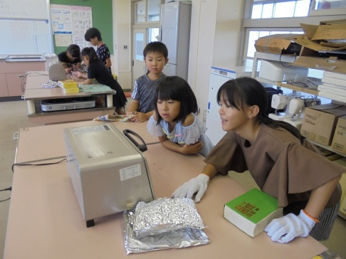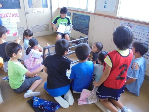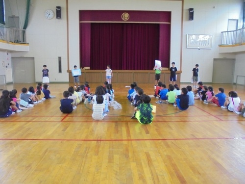2週間ほど前から5,6年生がグループに分かれて計画的に「ヨーヨーつり、ストラックアウト、積み上げゲーム、お化け屋敷、プラバン、宝さがし」の6コーナーの準備をしてくれました。体育館での開会式では児童会長さんからの挨拶と各コーナーの紹介がありました。4年生がリーダーになりなかよし班で各コーナーを回りました。時間待ち用のいすも準備されていてびっくりしました。5,6年生の皆さんたいへんな準備をありがとう。みんなとても喜んでいました。大成功です。
