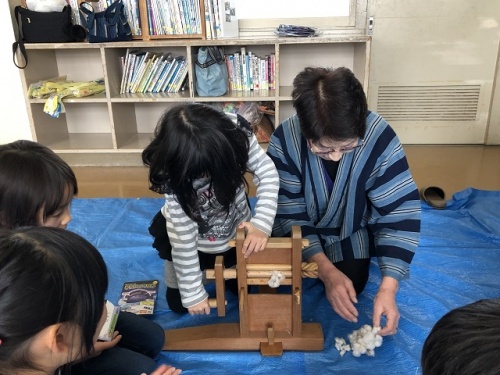 ホーム > 日々の活動の様子 糸車体験(1年生) 夕づる会のみなさんに来ていただき糸車体験をしました。道具の説明を聞いた後、自分たちで育てた綿を使って「種を取り出す」「綿を柔らかくする」「糸をつむぐ」作業を体験しました。自分で紡いだ糸を記念にいただきました。 タグ:2019年度 シェアする Twitter でシェア はてなブックマークに保存 LINE でシェア Facebook でシェア Pocket に保存 Feedly で購読 関連投稿 日々の活動の様子 明日は修了式、離任式です。 日々の活動の様子 校内キャンプ 学校だより 学校だより№18発行 日々の活動の様子 新刊が入りました。 日々の活動の様子 もち米販売準備(5年生) 日々の活動の様子 けんこうおみくじ(保健室) 前の投稿 音楽(2年生) 次の投稿 理科(3年生)