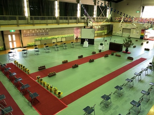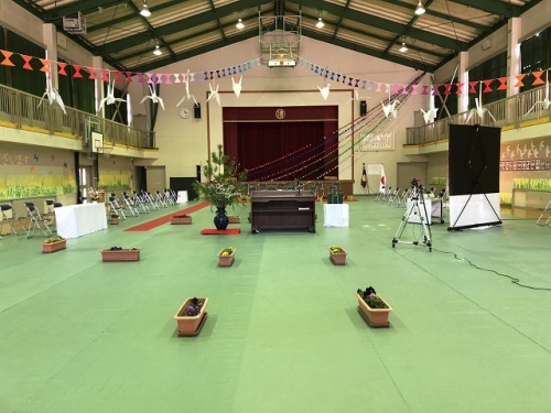 いよいよ明日は卒業式です。漕代小学校は会場の準備ができましたよ。小学校6年間での最後の授業を思い出に残る舞台になるように会場を作ってきました。皆さんの心の準備はどうですか?みんなで素敵な最後の授業「卒業式」にしましょう。教職員一同皆さんが元気に登校してくることを楽しみにしています。