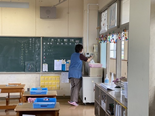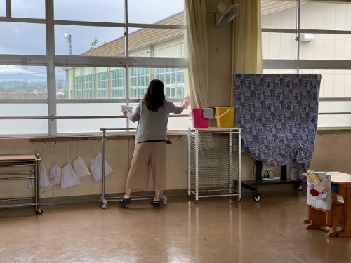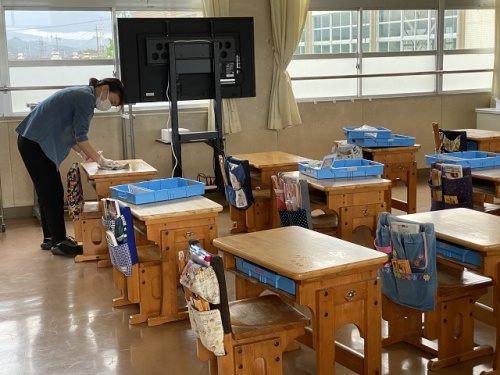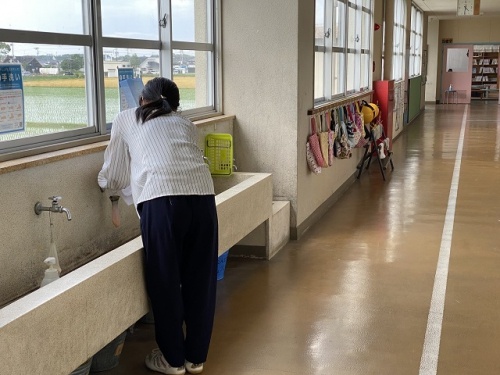 ホーム > 日々の活動の様子 消毒作業 子どもたちが帰った後、職員が次の日の登校にむけて消毒をしています。子どもたちが使う机やいす、さわりそうなスイッチ、ドアノブ、窓枠、手洗い場、トイレ等をグループに分かれて行っています。 タグ:2020年度 シェアする Twitter でシェア はてなブックマークに保存 LINE でシェア Facebook でシェア Pocket に保存 Feedly で購読 関連投稿 日々の活動の様子 発育測定(6年生) 日々の活動の様子 ナイトキャンプ準備(5・6年生) 日々の活動の様子 PTA清掃作業 日々の活動の様子 リクエストBOX 日々の活動の様子 パンジーを植えました。 学校だより 学校だよりNo.7 前の投稿 どこでしょうクイズ5のこたえ 次の投稿 認証式