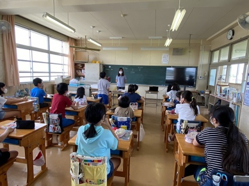 今日から新しいALT(外国語指導助手)さんに来ていただきました。自己紹介を映像を交えながらしていただきましたので子どもたちもだいたい理解できたようです。その後はALTさんに質問タイム。「好きな国は?」「日本のアニメで好きなキャラクターは?」等を英語で質問したり、日本語で質問して得意な子が訳してくれたり・・・楽しい英語の時間でした。