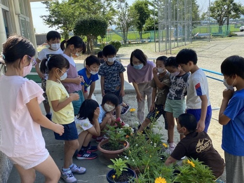 ホーム > 日々の活動の様子 チョウの出発式(3年生) 教室で卵から育てていたチョウが成虫になったので、みんなで逃がしてやることになりました。しばらく飛んでいかず、じっと花のところにとまっていました。飛んでいくところを見ようと3年生の子もじっと様子を観察していました。 タグ:2020年度 シェアする Twitter でシェア はてなブックマークに保存 LINE でシェア Facebook でシェア Pocket に保存 Feedly で購読 関連投稿 日々の活動の様子 ふうりんづくり(2年生) 日々の活動の様子 クラブ活動(4・5・6年生) 日々の活動の様子 さつまいも、玉ねぎの収穫(6年生) 未分類 スパート祭の作品作り(1年生) 日々の活動の様子 まごころぽかぽか汁 日々の活動の様子 地層ができるしくみ(6年生) 前の投稿 草取り 次の投稿 長さの学習(3年生)
