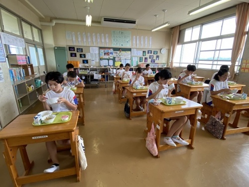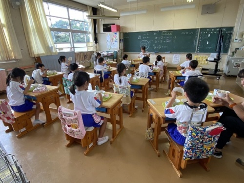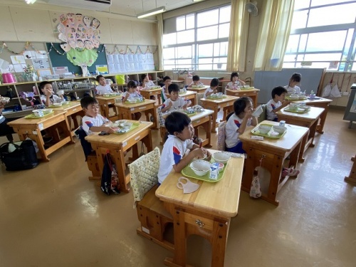 ホーム > 日々の活動の様子 給食の様子 今日は夏休み前最後の給食です。献立はごはん(麦入り)、鶏そぼろ、牛乳、バンサンスー、ピーチゼリーです。おいしくいただきました。 タグ:2020年度 シェアする Twitter でシェア はてなブックマークに保存 LINE でシェア Facebook でシェア Pocket に保存 Feedly で購読 関連投稿 日々の活動の様子 調べて話そう生活調査隊(4年生) 日々の活動の様子 50m走(3,4年生) 日々の活動の様子 発育測定(6年生) 日々の活動の様子 20,000ページ読書達成(3年生) 学校だより 学校だよりNo.12発行 日々の活動の様子 薬物乱用防止教室(6年生) 前の投稿 家庭科(6年生) 次の投稿 もうすぐ夏休み