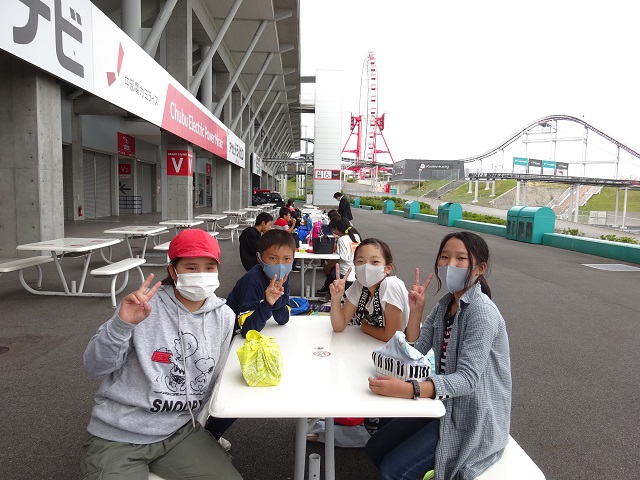 鈴鹿サーキットではお弁当を食べたり乗り物に乗ったり、地域共通クーポンで買い物学習をしたりしました。