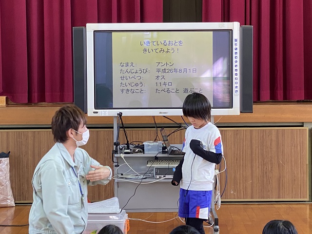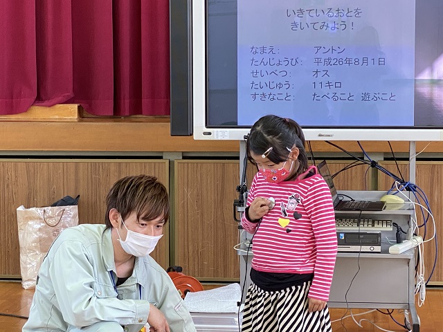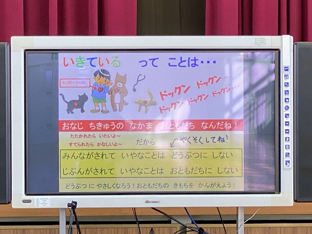 飼い主がいなくなり保健所のアイドルになったアントンの『いきているおと』(心音)を聞きました。最後にペットを飼うときの約束を学びました。