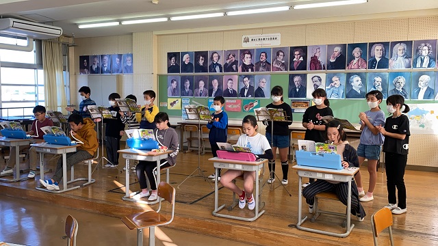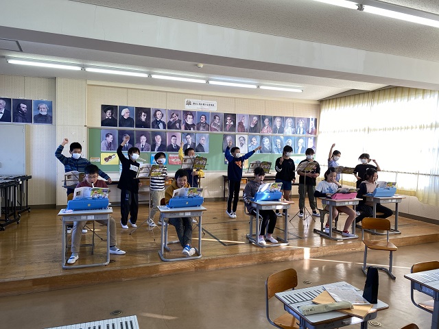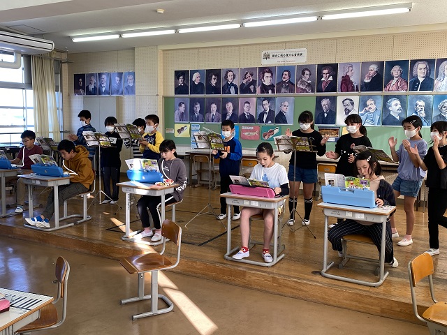 ホーム > 日々の活動の様子 ギャラクシー~銀河をこえて~(5年生音楽) 音楽室からノリノリの音楽が聞こえてきましたので、のぞいてみると・・・5年生が鍵盤ハーモニカと手拍子で演奏をしていました。音もお届けできるとよかったのですが、写真で楽しんでください。 タグ:2020年度 シェアする Twitter でシェア はてなブックマークに保存 LINE でシェア Facebook でシェア Pocket に保存 Feedly で購読 関連投稿 日々の活動の様子 修学旅行 鳥羽水族館 日々の活動の様子 志摩スペイン村 日々の活動の様子 床がピカピカになりました! 日々の活動の様子 20,000ページ読書達成(3年生) 学校だより 学校だより№17 学校だより 学校だよりNo.12発行 前の投稿 読書ゆうびん 次の投稿 玉ねぎ植え(1・2・5年生)