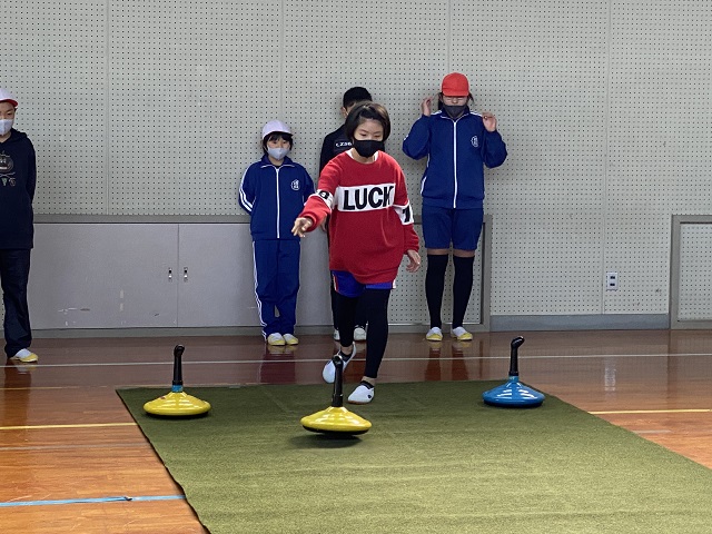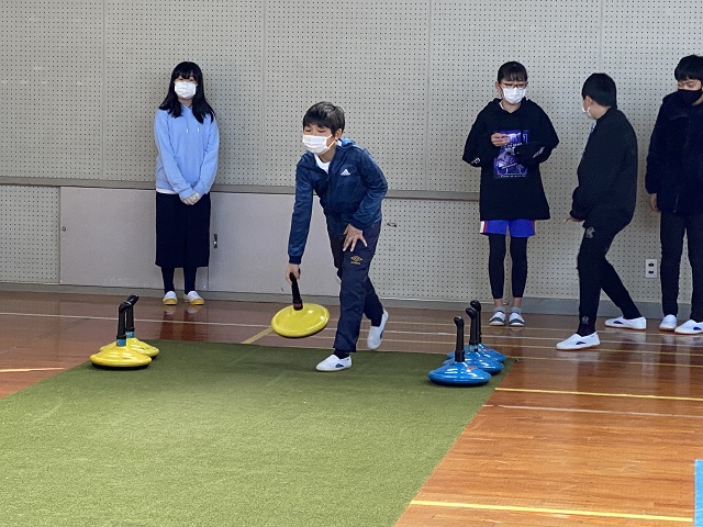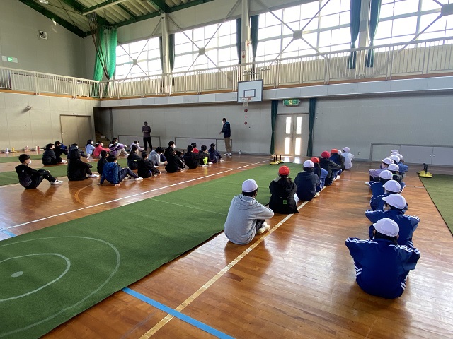 ルール説明の後、機殿小学校の児童によるデモンストレーションがあり、試合開始。ほとんどの児童が初めての体験でしたが、ルールもすぐ理解し楽しめました。