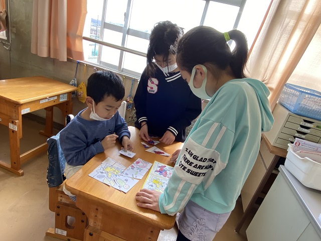 ホーム > 日々の活動の様子 一日入学 来年度入学予定の子どもたちの一日入学がありました。 図書室で説明をしている間、子どもたちは5年生の児童と一緒に過ごしました。5年生が作ったパズルで遊んだり折り紙を折ったりして楽しみました。 4月6日、みんなで楽しみに待っています。 タグ:2020年度 シェアする Twitter でシェア はてなブックマークに保存 LINE でシェア Facebook でシェア Pocket に保存 Feedly で購読 関連投稿 日々の活動の様子 クラブ活動(4・5・6年生) 日々の活動の様子 クラブ活動(4~6年生) 日々の活動の様子 和食の日 日々の活動の様子 樹木の剪定 日々の活動の様子 委員会活動 日々の活動の様子 さつまいものつるさし(1,2年生) 前の投稿 卒業に向けて(6年生総合) 次の投稿 調理実習(5年生)