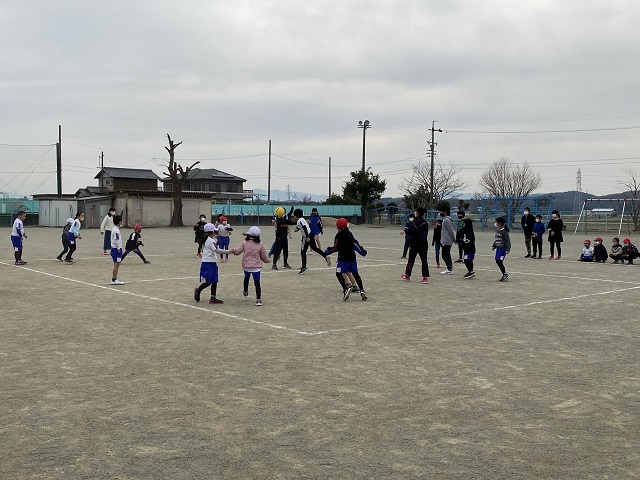 6年生のみんなが卒業までに全校で楽しいことをしようと「ドッジボール大会」を計画しました。 なかよし班対抗で行いました。ボールを譲り合ったり、下級生には投げ方を配慮したりしていました。みんなとても楽しそうでした。