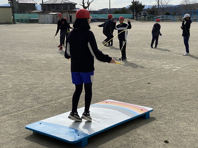 ホーム > 日々の活動の様子 二重跳び練習器 校務員さんに作っていただいた練習器に6年生が絵を描きました。 今日、体育の時間に試してみました。立つ場所にカモメの絵が描かれているのでわかりやすいです。 二重跳びができる子は三重跳びに挑戦していました。 タグ:2020年度 シェアする Twitter でシェア はてなブックマークに保存 LINE でシェア Facebook でシェア Pocket に保存 Feedly で購読 関連投稿 日々の活動の様子 大豆の種まき 日々の活動の様子 豆まき(1,2年生) 日々の活動の様子 聴力検査(3年生) 学校だより 学校だよりNo.6発行 日々の活動の様子 ちゃちゃもランチ 日々の活動の様子 認証式 前の投稿 卒業旅行(6年生) 次の投稿 防犯教室(不審者対応)