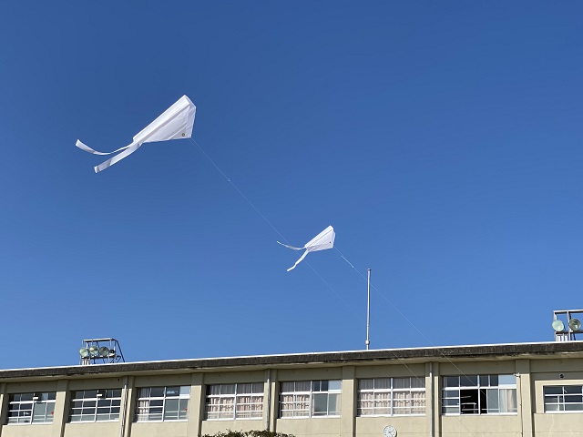 ホーム > 日々の活動の様子 たこあげ(1年生) 先週雨でできなかったたこあげを今日することができました。雲一つない青空に白い手作りたこがきれいにあがっていました。 タグ:2020年度 シェアする Twitter でシェア はてなブックマークに保存 LINE でシェア Facebook でシェア Pocket に保存 Feedly で購読 関連投稿 日々の活動の様子 ミニトマトの観察(2年生) 日々の活動の様子 社会見学(5年生) 日々の活動の様子 タブレットを使って(3年生) 日々の活動の様子 英語の授業(5年生) 日々の活動の様子 二重跳び練習器 学校だより 学校だよりNo.8 前の投稿 防犯教室(不審者対応) 次の投稿 和食の日