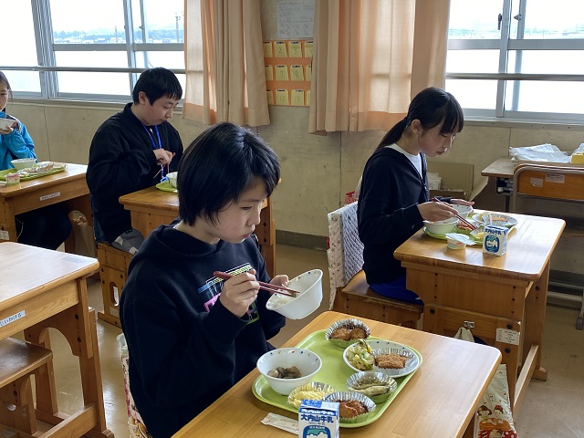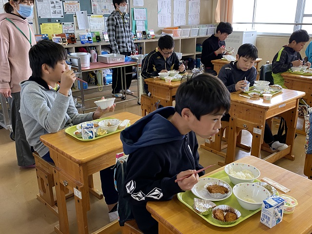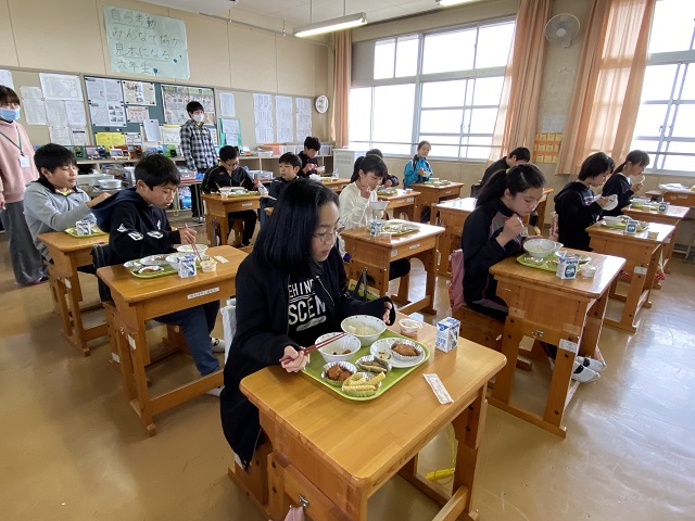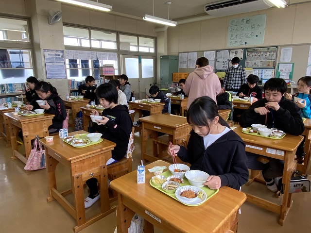 おいしくいただきました。給食室からのおまけもあり、全種類を食べた子もいました。