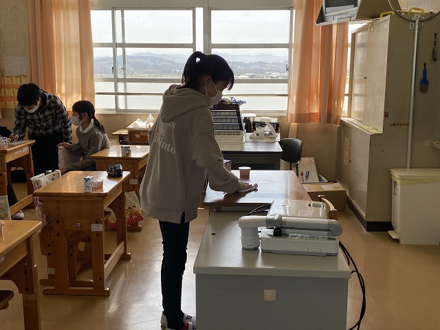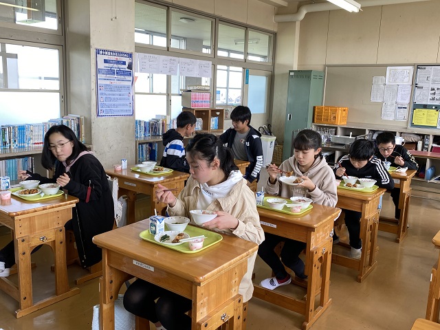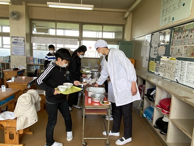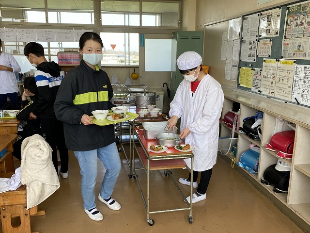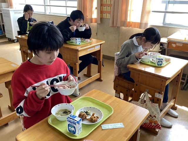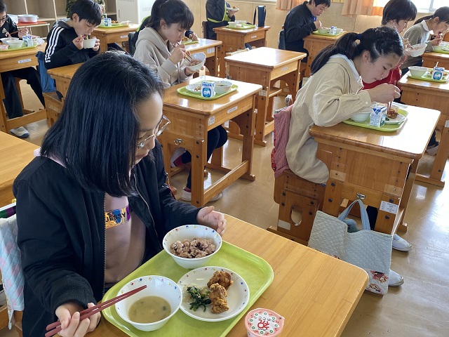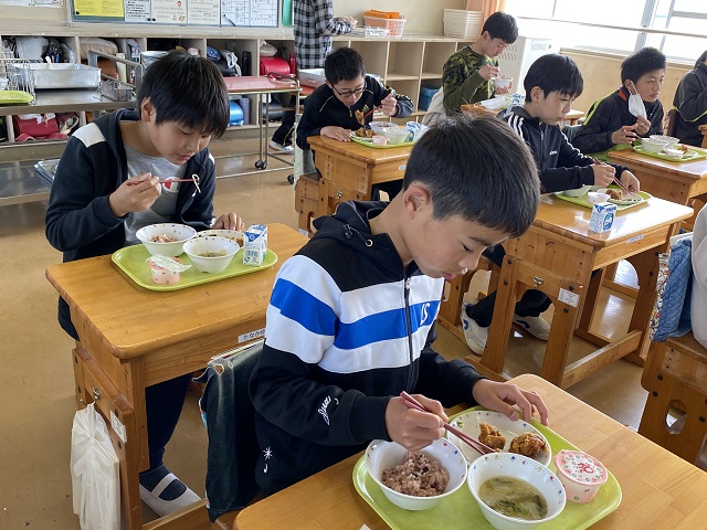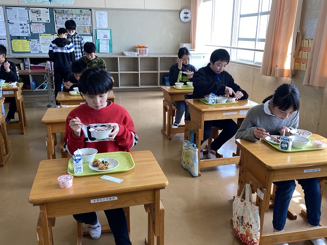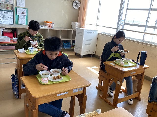 6年生の子どもたちにとって漕代小学校での最後の給食の時間です。配膳も慣れたものでスムーズに進みます。