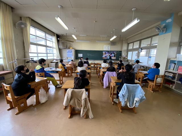 教室では担任との最後の学活です。あゆみをもらったり、写真で1年間を振り返ったりしていました。