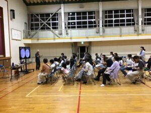 体育館では、水谷先生による星空の講演が行われ熱心に聞き入っている子どもや保護者さんでいっぱいでした。