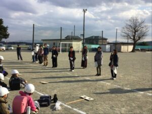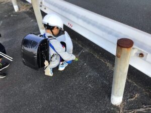 火が付いたら危ないなぁと言いながら、丁寧に拾い集める低学年に児童。
