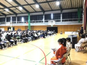 ホーム > 日々の活動の様子 東部中学校区人権フォーラムに参加して 6年生が人権フォーラムに参加しました。 被爆体験者の山口さんのお話を聞きました。 その後で、平和について考え合いました。 タグ:2025年度 シェアする Twitter でシェア はてなブックマークに保存 LINE でシェア Facebook でシェア Pocket に保存 Feedly で購読 関連投稿 日々の活動の様子 2年生の親子行事 日々の活動の様子 さつまいも掘り(1・2・3年生) 学校だより 学校だよりNO.10 日々の活動の様子 いよいよ後期がはじまりました。 学校だより 学校だよりNO.20 日々の活動の様子 稲刈り体験 前の投稿 クリーン作戦2 次の投稿 1年生の学年行事を行いました。